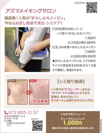 針なし水光メソガン顔3000→1500円 首2000→1000円